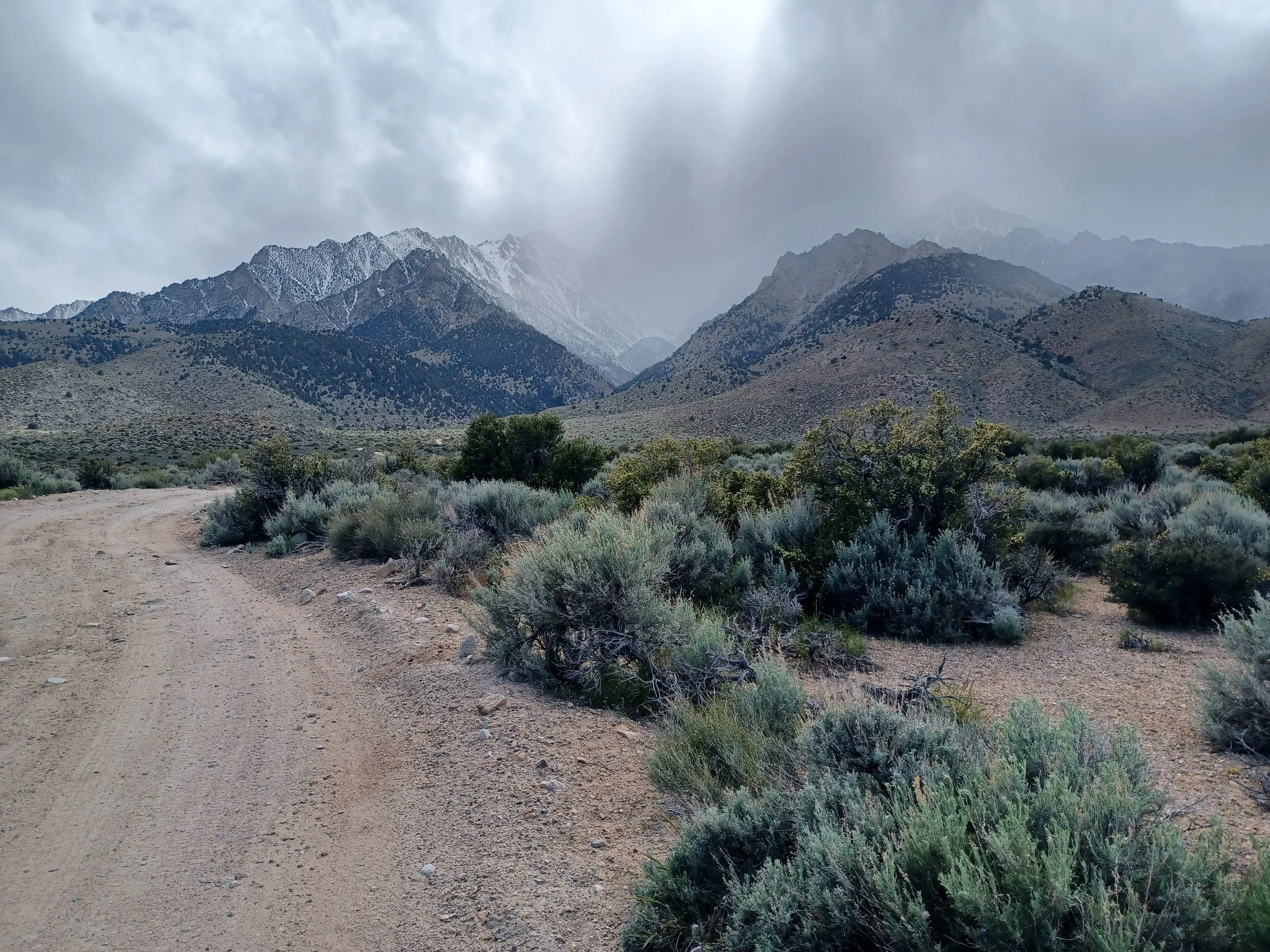 Snow falling on Onion Valley- maybe I should go for a ride?