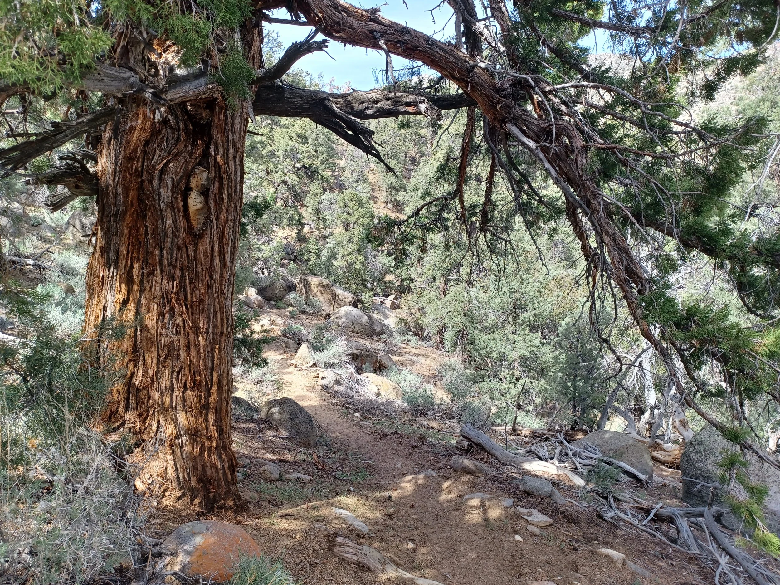 I have two campsites lumped into one, they're in the same area without cell service! Kennedy Meadows was the destination, but I got sidetracked by Chimney Peak- I should just explore here before finishing off the drive! Then I stumbled into a pristine camp spot. When I got on my bike to check out the area, whoops! It's all downhill- and steep! And rugged roadway. Did I mention the forest roads tend to be more like 4WD roads? That ride was short lived.